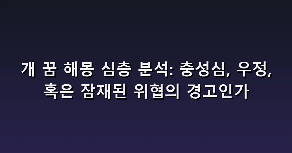밤의 장막이 걷힐 때, 우리는 종종 현실에서는 마주할 수 없는 신비로운 존재와 조우합니다. 그중에서도 가장 흔하고도 상징적인 존재는 바로 개입니다. 개 꿈 해몽: 충성, 우정 또는 숨겨진 공격성이라는 키워드는 단순한 동물의 등장을 넘어, 당신의 내면세계와 대인관계의 깊은 심리를 비추는 거울과 같습니다. 이 꿈은 당신의 삶에서 가장 신뢰하는 관계를 상징할 수도 있고, 억눌린 분노나 경고의 메시지를 담고 있을 수도 있습니다. 지금부터 이 충실한 안내자의 꿈속 의미를 심층적으로 탐구해 보겠습니다.